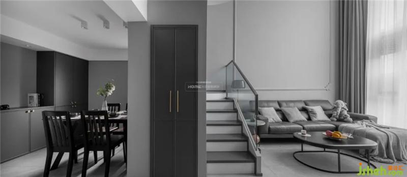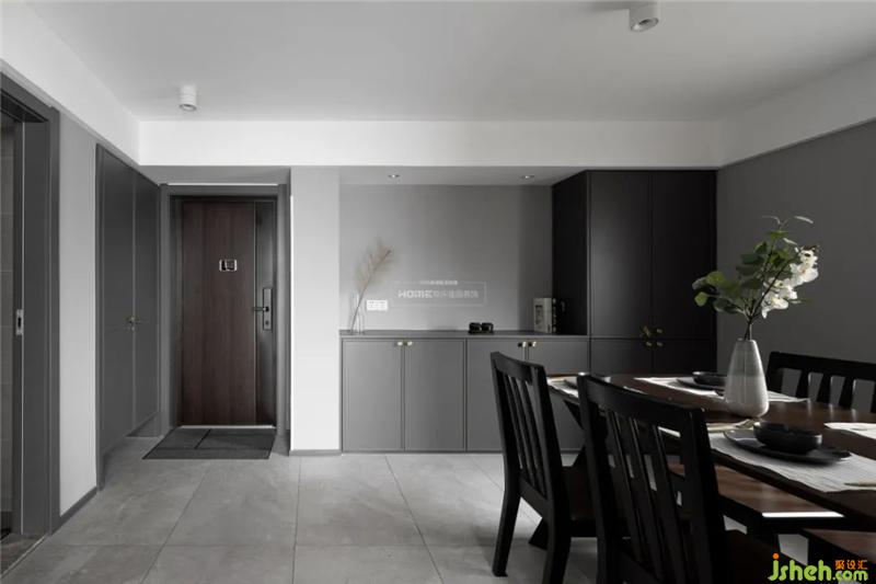 餐廳是入戶的第一個(gè)空間,設(shè)計(jì)師在靠入戶的墻面設(shè)計(jì)了儲(chǔ)物柜,方便進(jìn)出房屋拿放東西。餐廳采用無(wú)主燈設(shè)計(jì),設(shè)計(jì)師根據(jù)人在空間中的活動(dòng)習(xí)慣,設(shè)計(jì)了三組光源,滿足餐廳空間的使用。