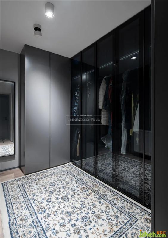獨(dú)立衣帽間采用實(shí)體門以及玻璃門相結(jié)合的方式,結(jié)合柜內(nèi)燈光,使空間層次感更豐富。