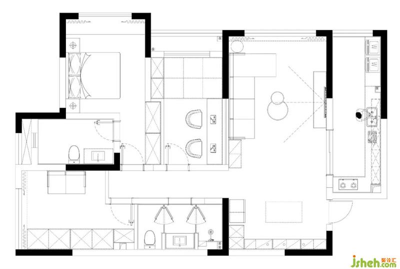 項(xiàng)目的戶型改動(dòng)不大,將原本衣帽間門調(diào)整到原有儲(chǔ)物間位置,形成過道獨(dú)立端景位置。其次將次衛(wèi)生間做三分離衛(wèi)生間,方便使用。