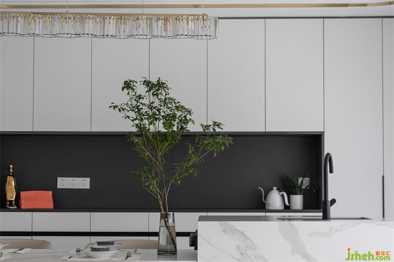 餐廳采用島臺加餐桌的設(shè)計(jì)方式;在吧臺做做手工,做做烘培;不僅撫慰自己的胃,也更撫慰焦慮的心。