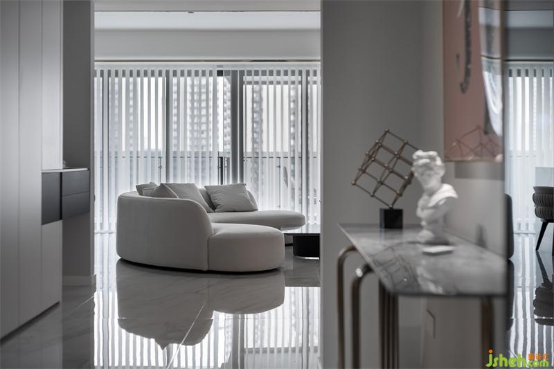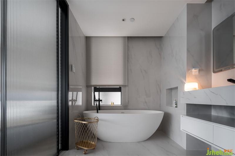 刪繁就簡,去偽存真,灰色墻面及白色爵士白瓷磚連紋在一起使整個(gè)空間顯得格外生動(dòng),猶如絲帶在起舞。