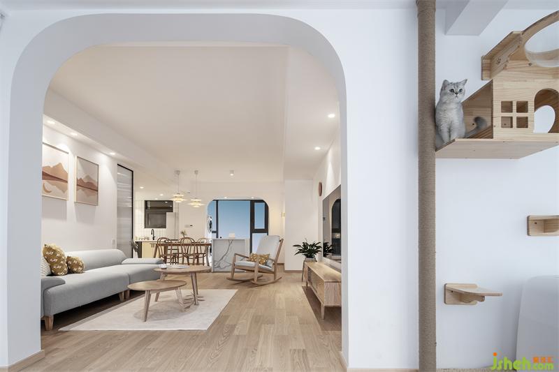 本案業(yè)主是90后單身,父母偶爾會過來住。女業(yè)主是動漫設(shè)計工程師,家里有兩只貓,喜歡自然簡潔的原木風(fēng),業(yè)主性格活潑,喜歡旅游。希望自己家的每個角落都能散落著自己喜歡的物件,這樣每看到一樣?xùn)|西都能回憶起旅游的點點滴滴,從而增加了家的溫度。在成都裝修設(shè)計造型上放棄了十字繡和豪華水晶吊燈,以及五顏六色可變化的燈帶。最終以原木色和白色結(jié)合的元素設(shè)計。