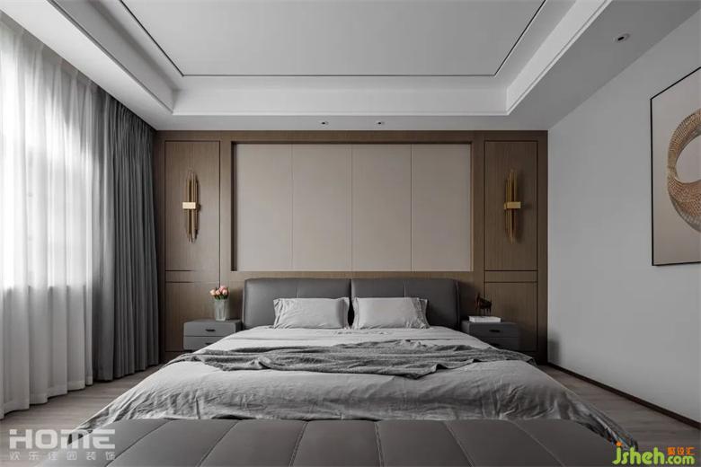 The bedroom adjusts with each space to keep consistent, uses the point light source to increase the spatial atmosphere feeling, promotes the overall design feeling.