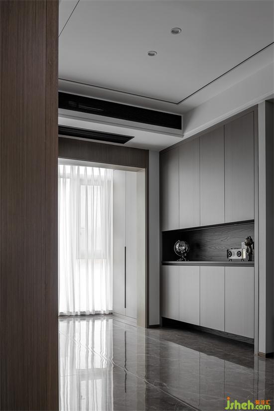 The toilet is connected with the cloakroom to increase the sense of extension of the space. Washstand Mirror pull-through, the back for storage space, to meet daily needs while enhancing the space screen.