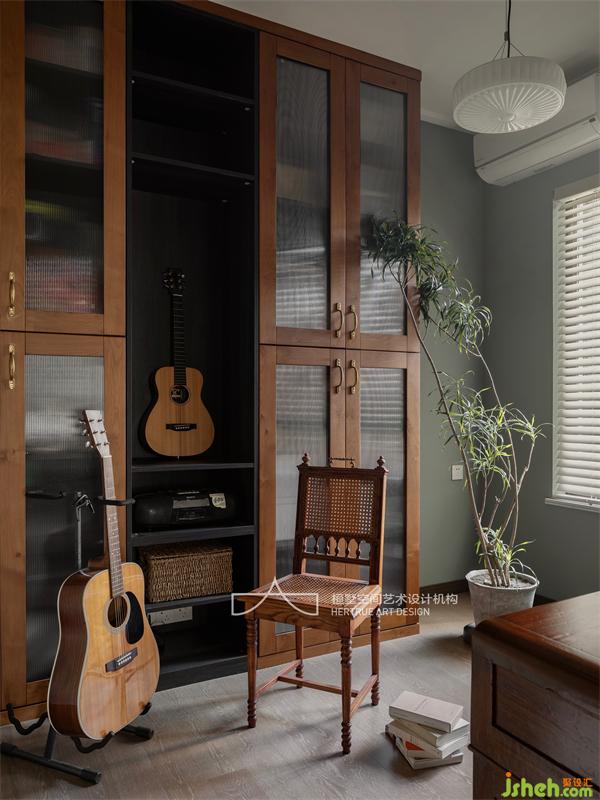 書桌是小時(shí)候就在用的老家具,承載著童年的美好回憶,重慶家居設(shè)計(jì)這次新家裝修特意搬了過來,書柜的配色便是參考書桌的感覺來的,非洲柚木,黃銅拉手,細(xì)管長(zhǎng)虹玻璃,濃郁的復(fù)古味兒,封閉和開放形式相結(jié)合,玻璃元素的參與讓它有了通透感。