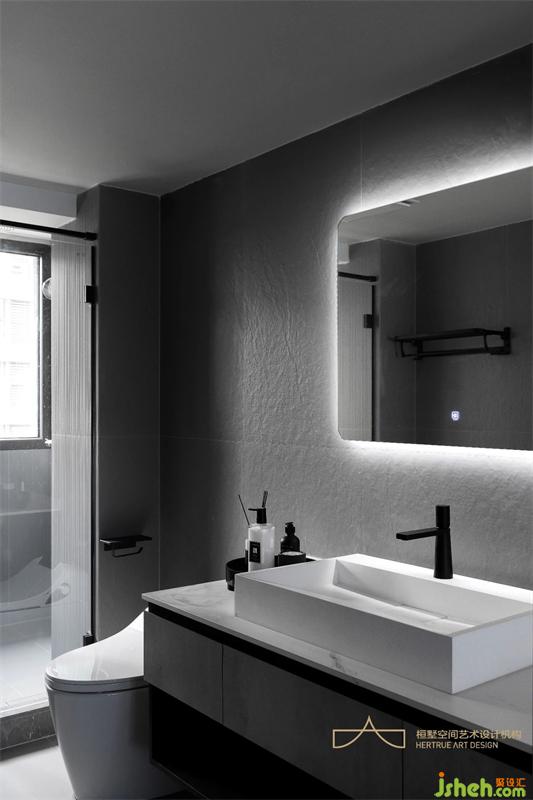 衛(wèi)生間區(qū)域,以高級灰與經(jīng)典黑白把持全局,予以滿眼治愈享受,讓整個空間變得豐富又和諧。重慶裝修設(shè)計墻壁鏡子環(huán)繞式燈帶為空間營造立面的靈動感,每當(dāng)燈光亮起,緩緩照亮品質(zhì)生活的細(xì)節(jié)。
