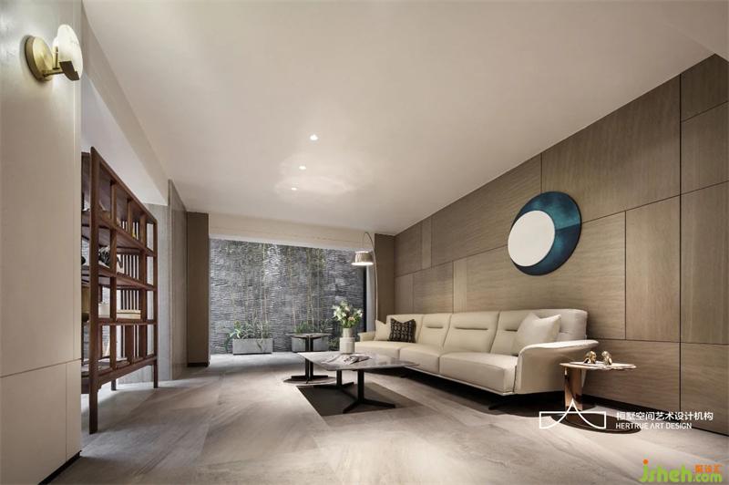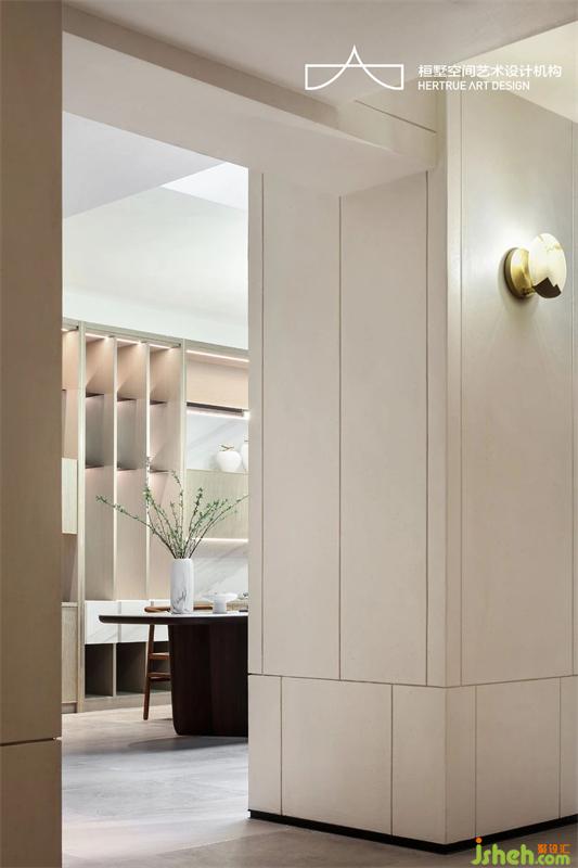 將中式線型留白意境重新組織語言,巧妙修飾大型承重柱并起到修平原來土建墻面基礎(chǔ)的嚴(yán)重錯(cuò)位不平整。