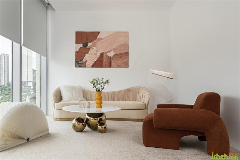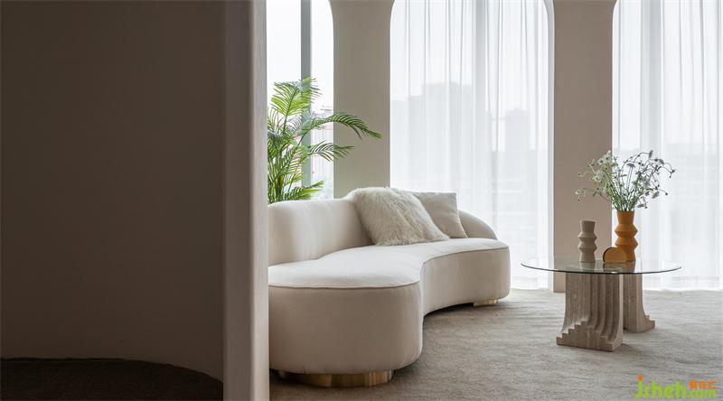 家具去掉銳利的棱角、卸下心里的防備,讓感受者沉浸在一片奶白色系中,回歸女性自我的一面,圓潤造型與空間主打產(chǎn)品形成和諧共生關(guān)系,一切都順其自然。
