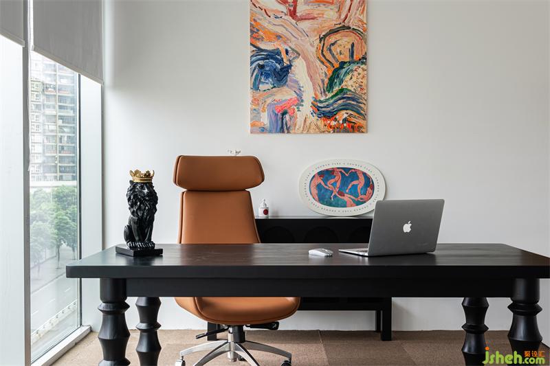 In the tone of brown and black office space, a warm mural color is stunning and mellow, brilliant and extreme, which explodes the extreme tension of space.
