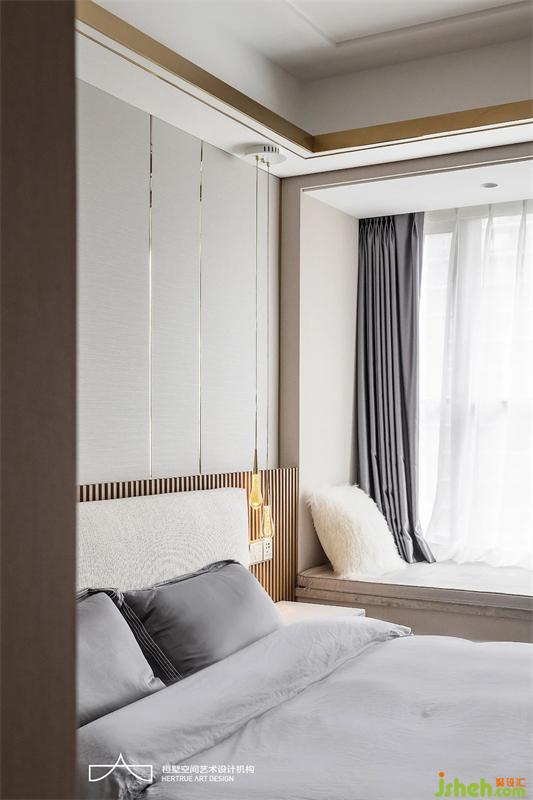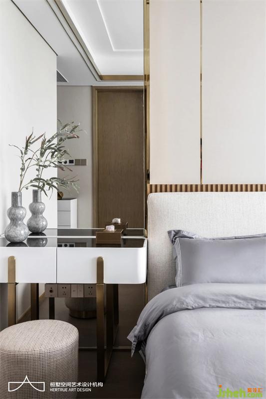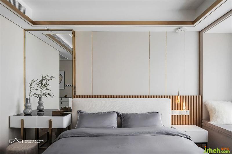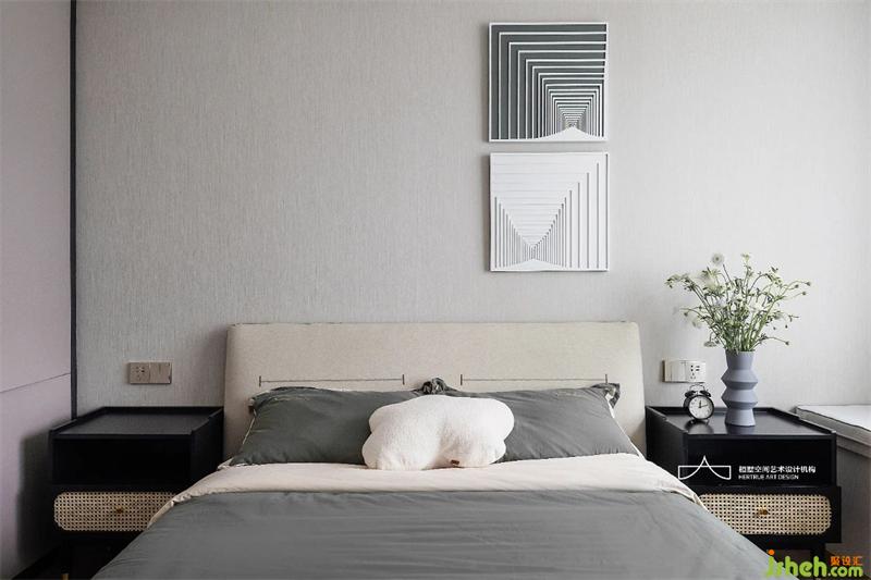 主臥采用中性灰色調(diào)統(tǒng)一雅致,