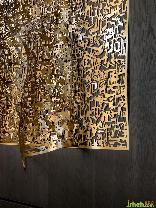 提取“頤瑞府”漢字中的偏旁部首作為拆解元素,藝術中心設計以解構(gòu)主義的手法用當代的設計語言,重塑了金縷玉衣。