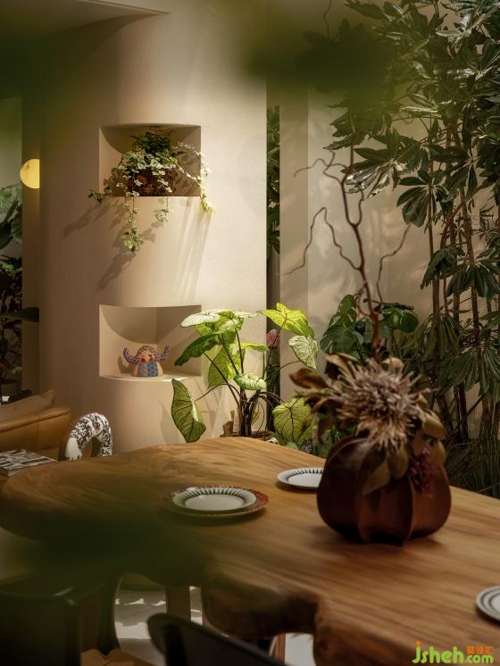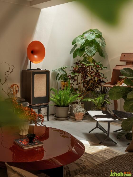 很難想象設(shè)計師在這個地上一層、地下兩層的格局內(nèi)置入了一個“四季花園”,躍墅設(shè)計借用天井引入自然光。這座自然和精神共享的堡壘,以自由迷人的盛放為整個家寫下序言。