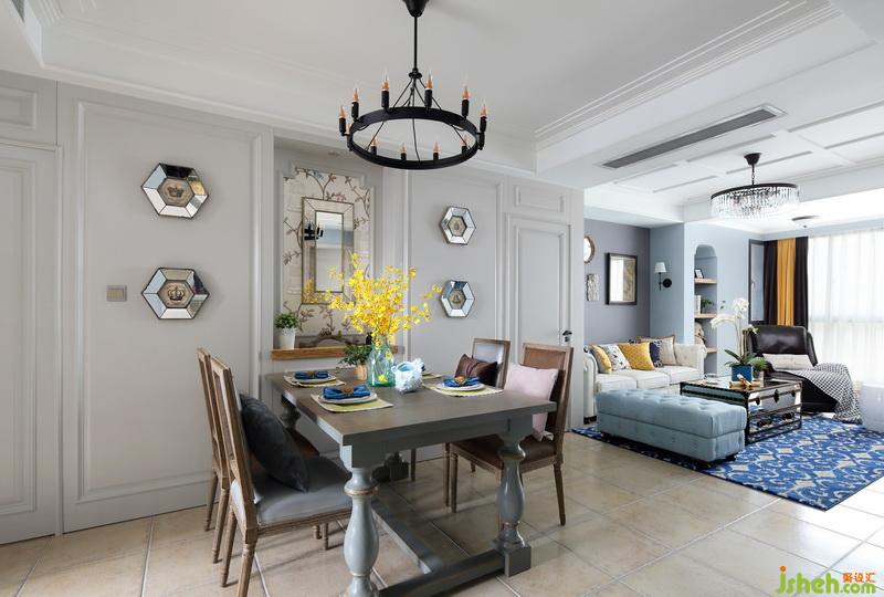 本次案例是一個(gè)125方的普通公寓房,有限的空間里承載著年輕夫妻的美好生活期望。通過(guò)室內(nèi)設(shè)計(jì)師的精心雕琢將現(xiàn)代美式與古樸禪意相融合,簡(jiǎn)單的對(duì)稱(chēng)布置與色彩穿插,不同程度的藏藍(lán)色與米色的對(duì)比讓空間顯得格外的溫馨、穩(wěn)重、雅致;皮革鉚釘?shù)仍貏t讓空間稍顯復(fù)古玩味,花鳥(niǎo)意境的軟裝又將空間豐富了幾種層次。相信在這樣的人文家居空間,都有種“歲月靜好,安之若素”的情愫吧……