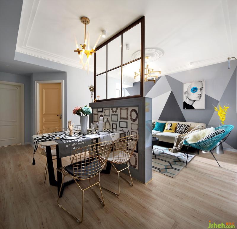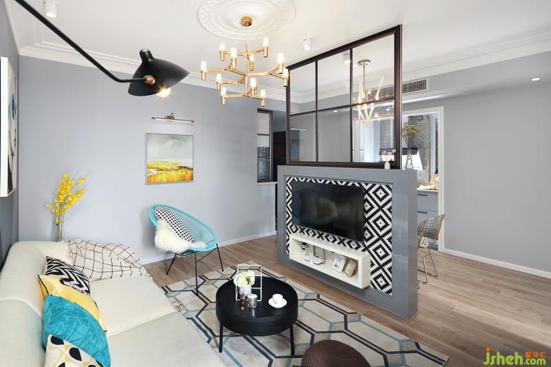 此次案例,戶型來自經(jīng)典的都市兩房結(jié)構(gòu),原結(jié)構(gòu)進門客餐廳在一個空間,整體光線較暗。次臥室的房門開在過道上,進門有個直角對沖到餐廳,故而次臥入戶門特意改成斜切角度,門再跳個亮暖黃色,故意使這個門作為獨特的背景存在,設(shè)計公司利用半高隔斷很好的將客廳與餐廳進行了區(qū)域性的劃分,整體選用了時尚北歐流行的美得很有深度的淺灰色。