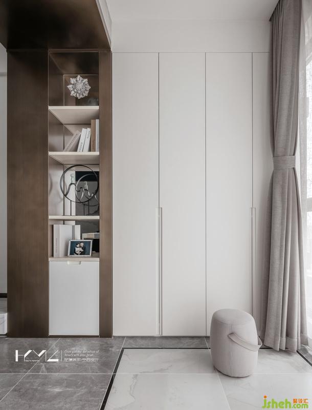 主臥地面通過高低差區(qū)分開來睡眠休息區(qū)和辦公更衣區(qū),這也是業(yè)主向我們提出的想法,希望空間能夠更加的細(xì)致,層次更加的豐富,衣柜柜門細(xì)節(jié),我們設(shè)計(jì)了金色中式裝飾框,著色很精致的銅制把手,豐富了細(xì)節(jié)感,床頭背景的寫意現(xiàn)代山水畫,凸顯了空間的莊重中式風(fēng)味,在這樣色彩比重很舒適的空間中,人感官會很舒適,亦不會審美疲勞。