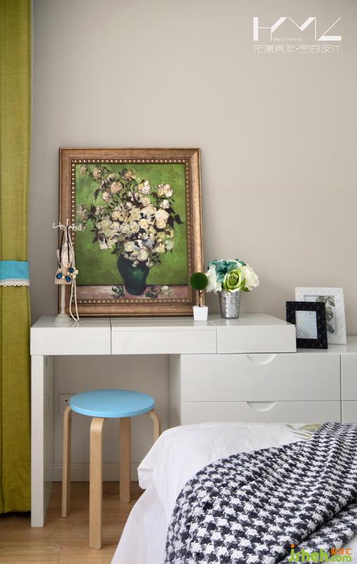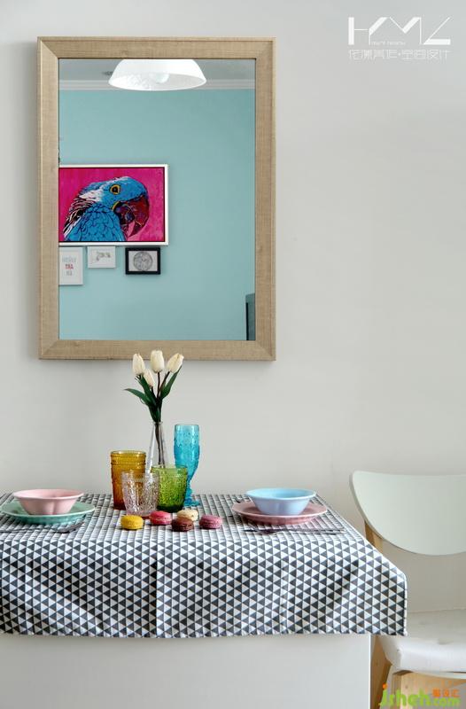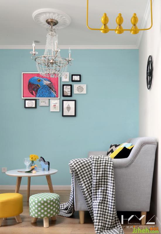 在初步溝通的時候,《虎媽貓爸》正在熱播,女業(yè)主很喜歡里面學(xué)區(qū)房給一家三口帶來的溫馨風(fēng)格,我們室內(nèi)設(shè)計師在看過之后,也深深地為“虎媽”的裝修功底折服。于是我們室內(nèi)設(shè)計師將“虎媽”家的風(fēng)格沿用到業(yè)主家,一開始就將青、橙、黃、玫、綠幾個色彩組合定義融合到整個房屋設(shè)計之中,主色選用的是Tiffany藍(lán)色,這種色彩的飽和度不高,讓空間少了粘膩感,多了陽光呼吸的氣息,高飽和度的亮色軟裝點綴反而讓空間顯得清爽。