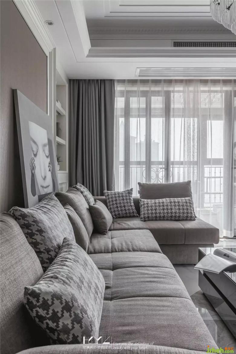 客廳有三個(gè)過廳,拱形門洞的造型加上高柱腳,電視背景這側(cè)的與對(duì)面的正好是中軸對(duì)稱的布置形式,三個(gè)拱形門洞瞬間提升了空間的高貴典雅的氣質(zhì)。