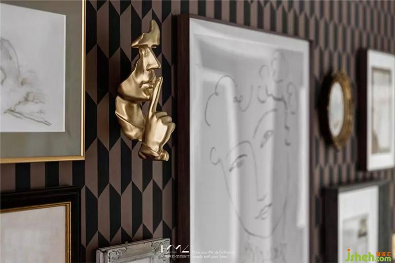 一套組合裝飾復(fù)古壁掛畫壁掛在壁紙上,豐富而又精致,讓人仿佛置身在藝術(shù)畫廊之中。