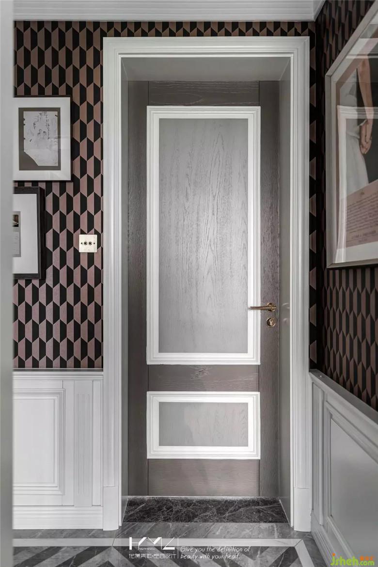 門套與房門的組合,是特別的定制,白色,淺灰,深灰的顯紋三色混拼,讓定制廠家頭疼不已,配上精選的金色把手,細膩質(zhì)感分布在整體各個細節(jié),讓整個空間既有強烈的藝術(shù)張力,又有風(fēng)格主義的藝術(shù)質(zhì)感。