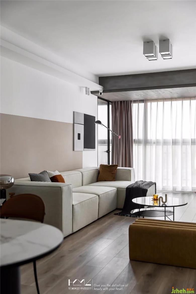 沙發(fā)背景三色分隔,裝飾畫同元素搭配