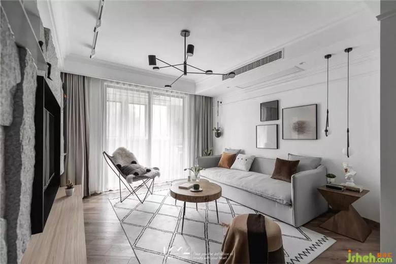 客廳的兩面背景裝修公司采用了一張一弛的設(shè)計手法,電視背景采用堅硬的石皮、鋼板和溫潤的木制搭配,充滿現(xiàn)代感。沙發(fā)背景圓角的處理以及白色線條的加入,調(diào)和了電視背景稍顯冰冷的感覺。休閑現(xiàn)代風的原木家具,增添了空間溫暖的感覺,燈具及植物掛飾細致點綴。