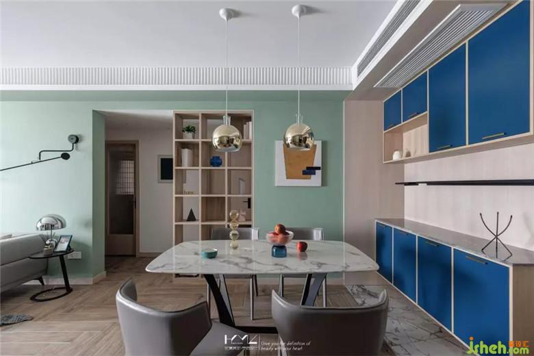 跳躍的藍色餐邊柜,顏值與實用兼具