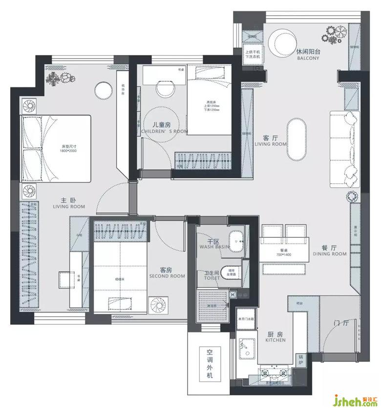 干濕分離,選用黑色金屬門框及移門,更顯精致現(xiàn)代