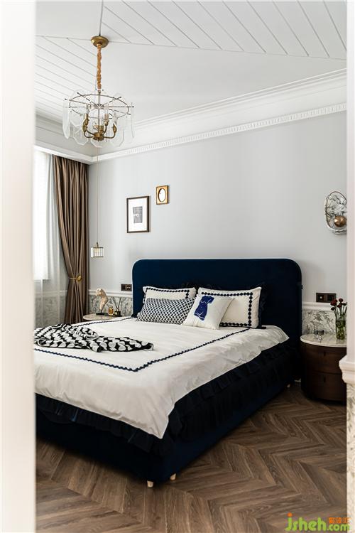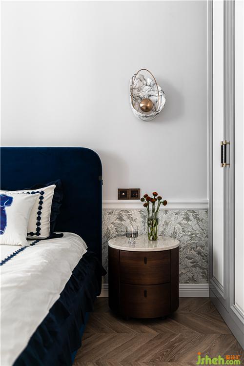 深藍(lán)色的床體作為空間的一個(gè)跳色