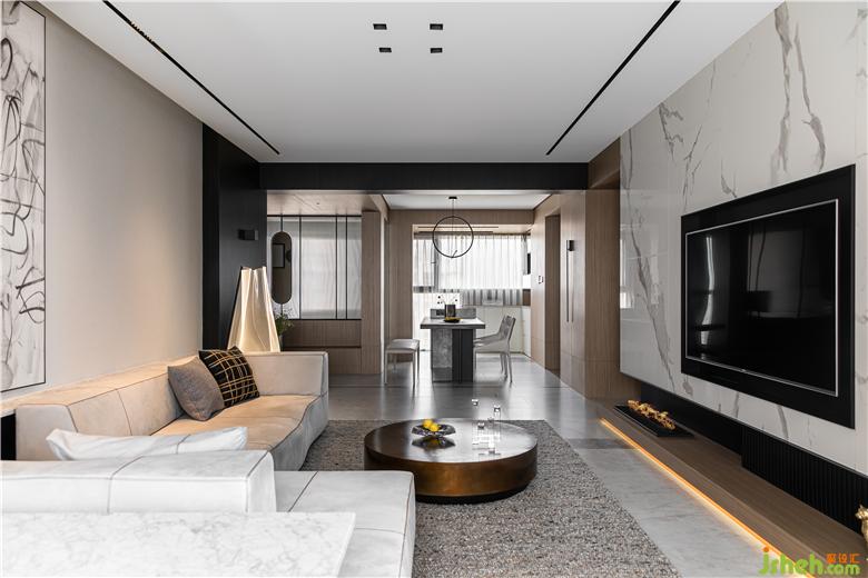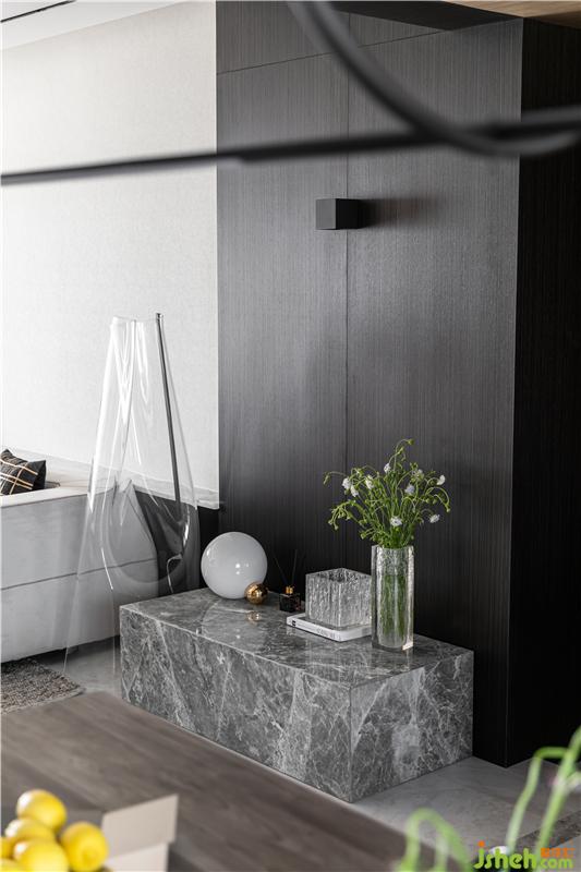 鋁框黑波飾面規(guī)避了收納的雜亂感,杭州家居裝修設(shè)計(jì)讓空間呈現(xiàn)出整齊劃一的秩序感和神秘的精致美感。