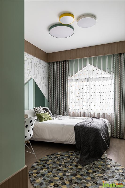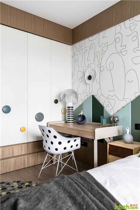 杭州家居裝修設(shè)計(jì)為小主人打造了獨(dú)立個(gè)性的臥室,特別定制的四色硬包拼接,運(yùn)用房屋造型勾勒趣味邊框,木飾面的運(yùn)用沿著頂順著墻、為陪伴入眠創(chuàng)造了溫馨的氛圍。