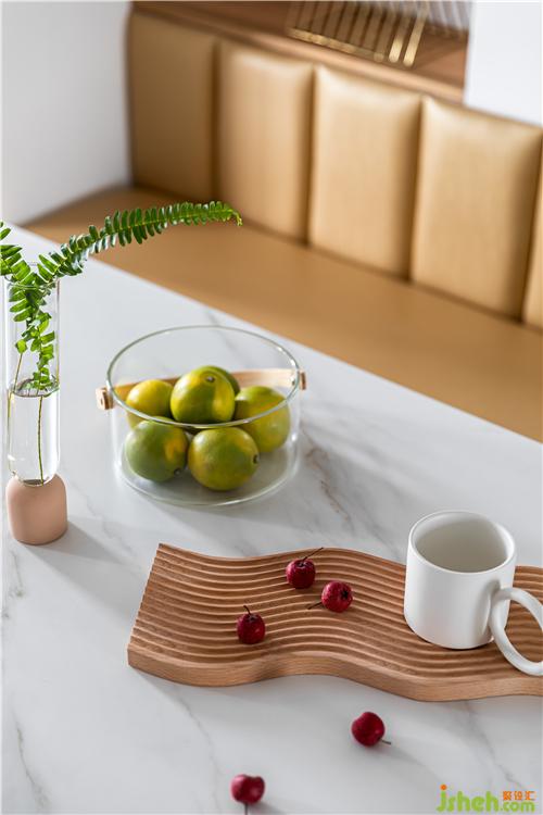 利用廚房轉角的承重柱,做了一個小吧臺,既是廚房臺面的一個延伸,又滿足了早餐桌的功能.