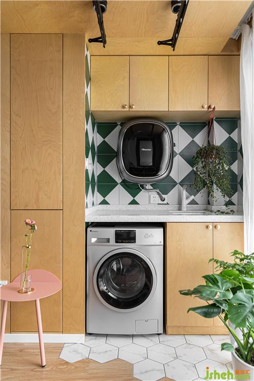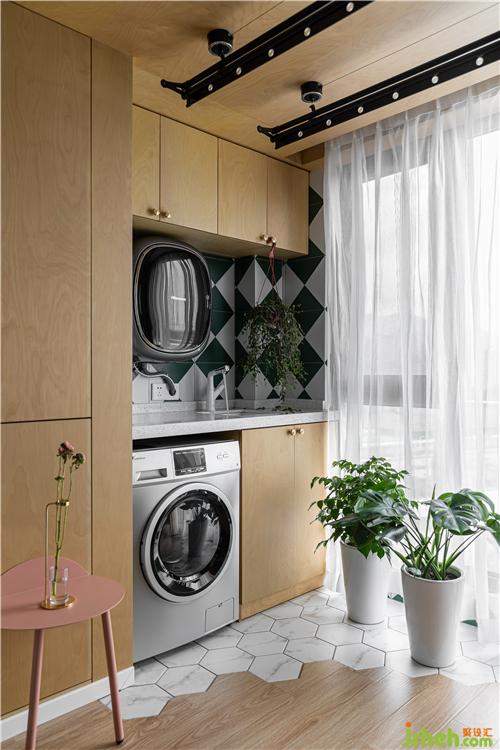 墻頂一體的樺木膠合板整體包裹,搭配特色花磚,凸顯陽臺(tái)休閑質(zhì)感.