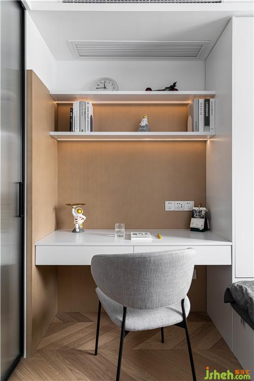 電視背景墻一端設(shè)計(jì)了一組開架與收納柜,錯(cuò)落的功能搭配與材質(zhì)沖擊削弱整面墻的壓抑感;定制的木色花盆與長(zhǎng)虹玻璃隔斷打破背景單一性,創(chuàng)造視覺上的呼吸點(diǎn)室內(nèi)設(shè)計(jì)師.