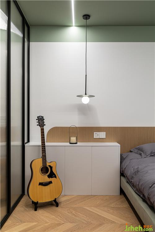極簡圓形床頭邊幾和沉穩(wěn)簡約的藤編隔斷組合,產(chǎn)生了材質(zhì)、色彩與線條的對比,最平常的局部小景因室內(nèi)設(shè)計師混搭手法而變得有質(zhì)感.