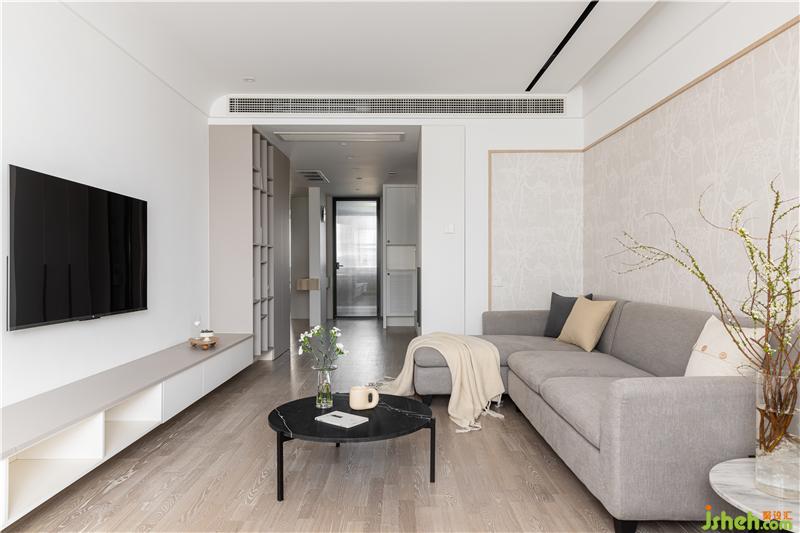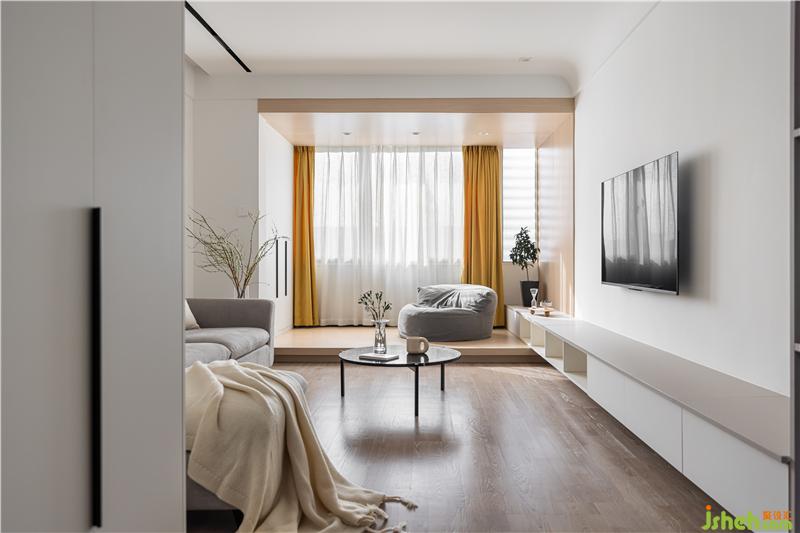 客廳采用無主燈設(shè)計,光源分散,讓家更有氛圍感. 整體色調(diào)以白色為主,點綴自然木色與灰色,窗簾的一抹黃色作為整個空間的跳色,干凈素雅的同時更加靈動南京裝修設(shè)計.