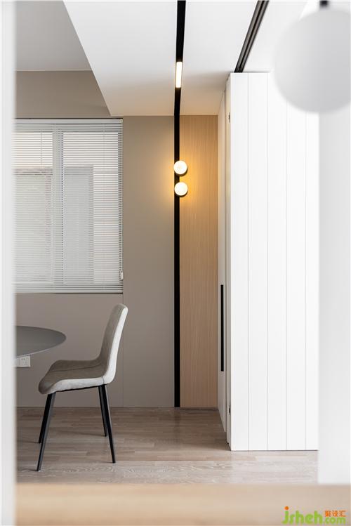 直角線條軌道燈與吊頂弧形線條碰撞,干凈利落不死板,更有幾分藝術(shù)氣息.