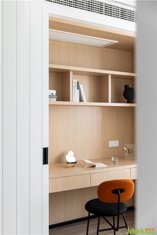 書椅靠背跳躍的一抹橙,使整個空間更加靈動.