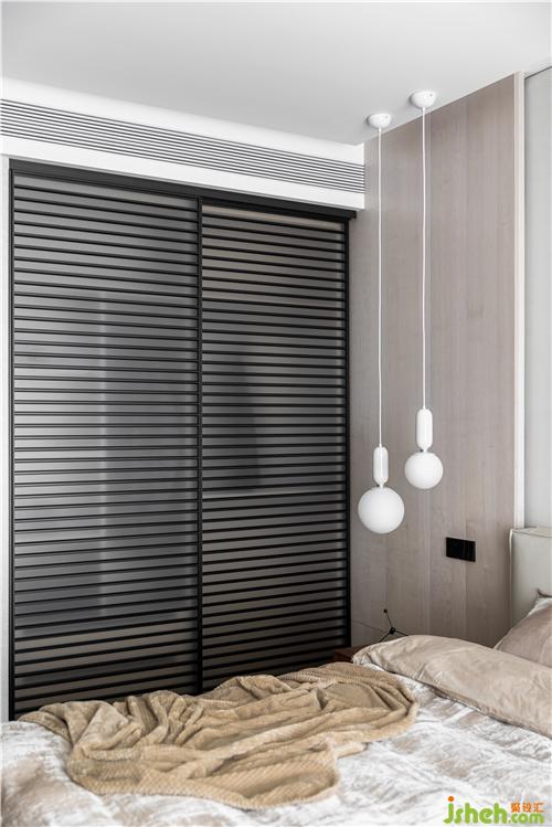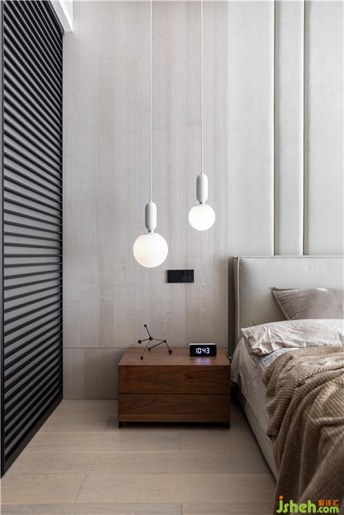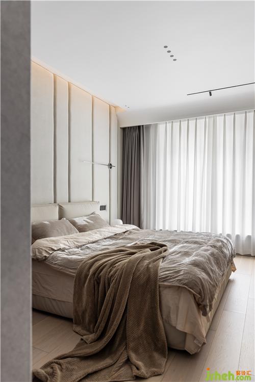 主臥延續(xù)了客廳的調(diào)性,柔和的色彩、靜雅的線條、安靜不張揚,優(yōu)雅的配色抹平了生活棱角,簡約素雅中夾雜著一份寧靜,讓人身心放松.