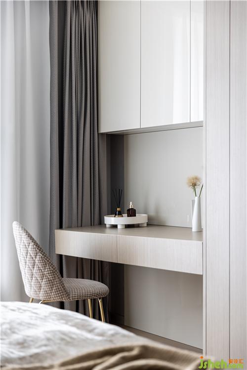 內(nèi)嵌的書桌兼梳妝臺,滿足了居家生活的多重需求.