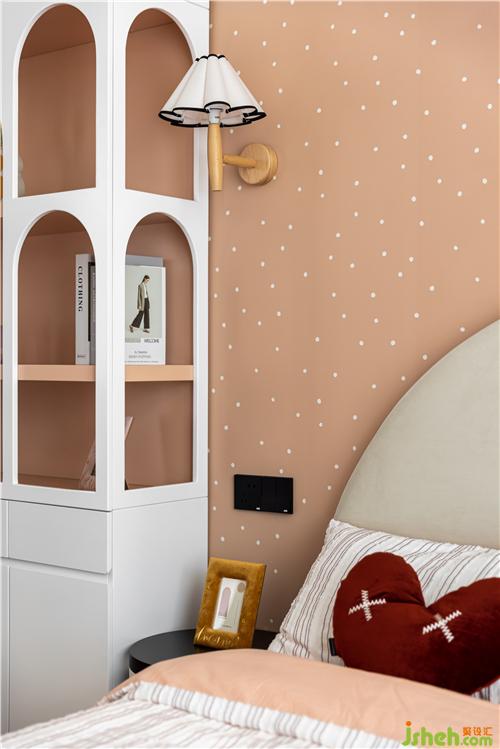 月亮造型壁飾,讓床背景仿佛點(diǎn)點(diǎn)星空一樣的存在,美輪美奐.