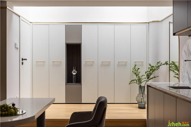 在人與空間的互動(dòng)中,整體色彩的轉(zhuǎn)折趨于平緩,用利落的柜體顏色搭配金屬線條貫穿整個(gè)地下室空間呈現(xiàn)現(xiàn)代而又簡(jiǎn)約的美感.