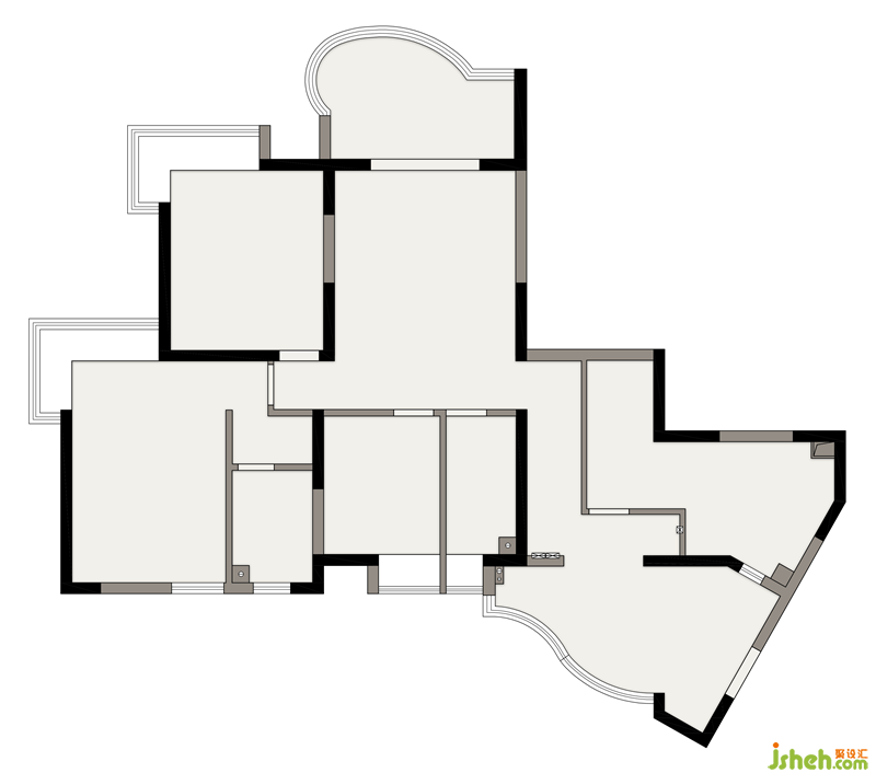 4、兒童房房門內(nèi)退,取消套衛(wèi),設(shè)置獨(dú)立主衛(wèi),放置浴缸