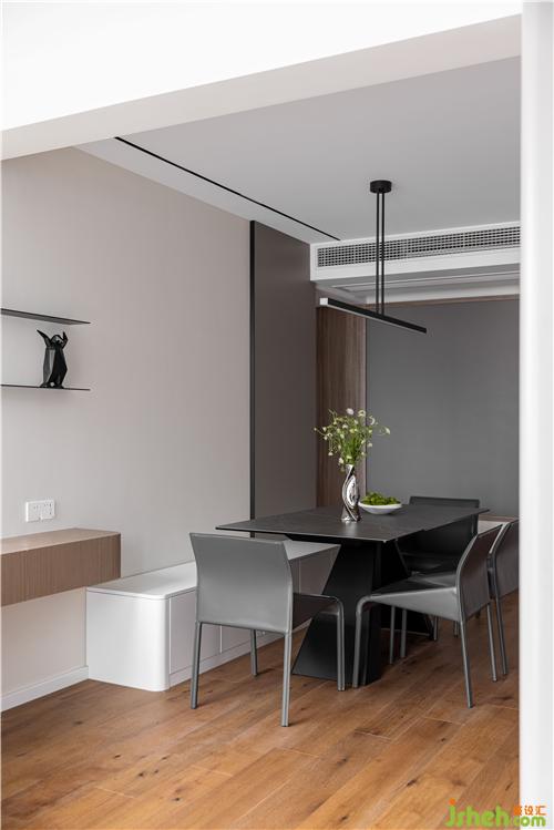 餐廳選用與客廳地臺同色系的巖板材質(zhì)餐桌,與原木色地板搭配,氣質(zhì)溫潤. 綠色植物的點綴南京室內(nèi)設計師,讓整體氛圍更加清新明快、生機盎然,開啟美妙和諧的用餐時光.