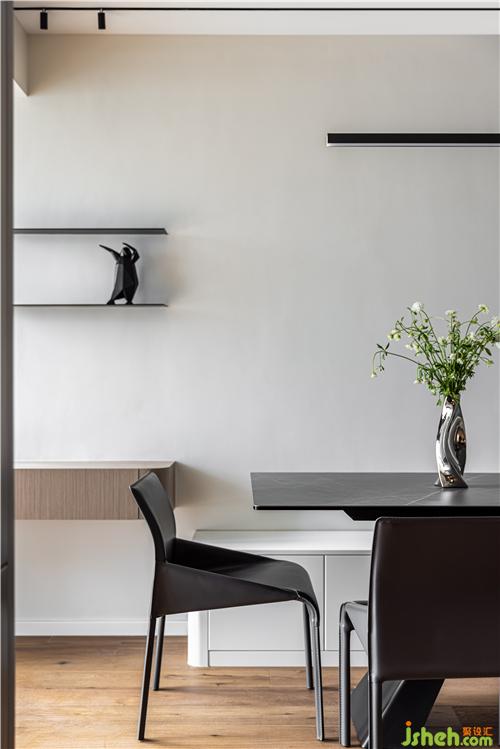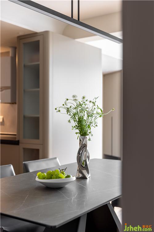 開放式廚房,打通傳統(tǒng)廚房與餐廳空間的隔閡,讓空間更具延伸感,灶臺(tái)與水池遠(yuǎn)離客餐廳區(qū)域,避免了油煙對(duì)客餐廳的影響.