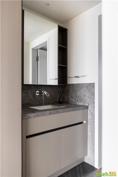 次衛(wèi)采用干濕分離設(shè)計(jì),提高空間利用率. 壁掛鏡柜為干區(qū)提供足夠的儲(chǔ)物空間南京室內(nèi)設(shè)計(jì)師. 選用臺(tái)下盆、嵌入式水龍頭,避免衛(wèi)生死角,實(shí)用美觀.
