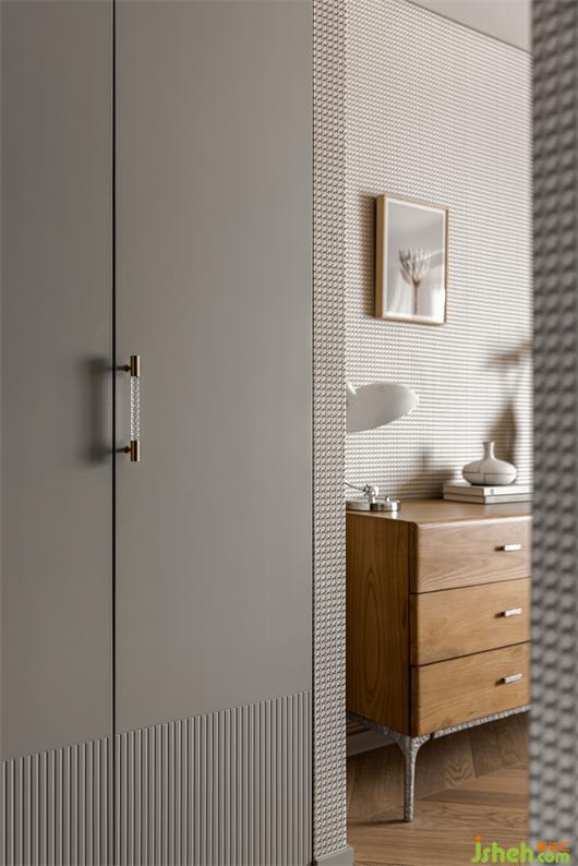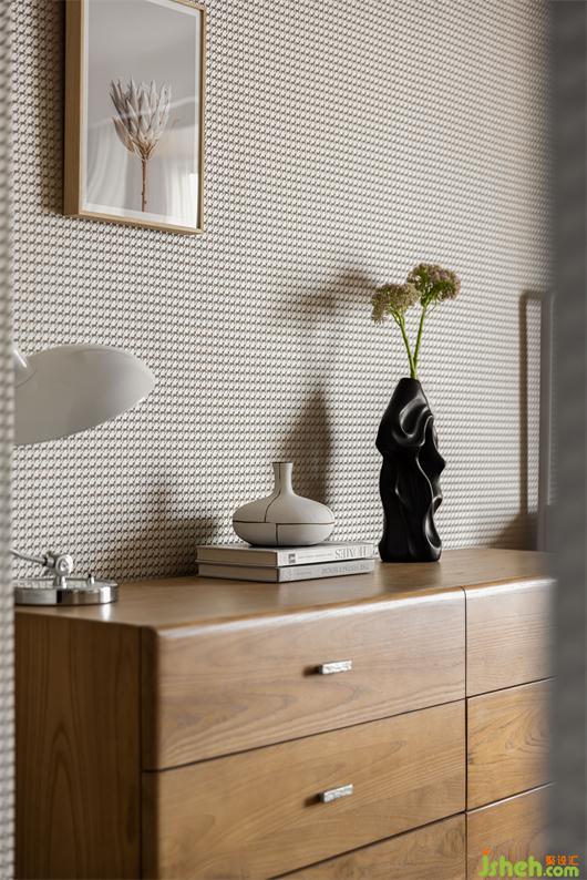 主臥選用最暖人心脾的大地色系進(jìn)行搭配設(shè)計(jì),肌理感的墻布,溫潤(rùn)木色系的家具,花漾美作在溫柔色調(diào)的濾鏡下,讓空間展現(xiàn)出溫潤(rùn)寧?kù)o,歲月靜好的模樣。白色皮質(zhì)床背靠,晶瑩剔透的燈具和柔和的紗幔窗簾結(jié)合將質(zhì)樸的寧?kù)o與時(shí)間消逝的美留存于空間,通過(guò)設(shè)計(jì)營(yíng)造舒適安心的自然氛圍。