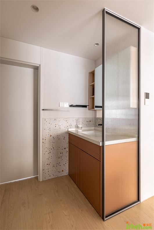 重新定義衛(wèi)生間功能用途,在基礎(chǔ)的干濕分區(qū)之上,別出心裁加入一面長虹玻璃隔斷。從造型上豐富了客廳的裝飾元素,在功能上,讓原本無自然采光的干區(qū)變得通透,為空間注入全新的材質(zhì)結(jié)構(gòu)。