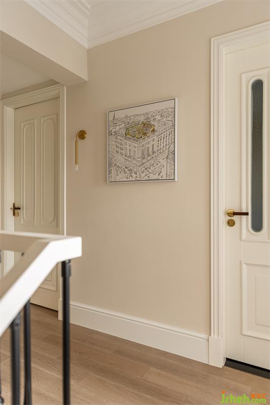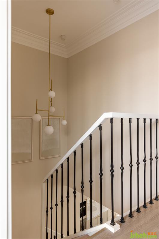 樓梯間接著陽(yáng)光房,雙開門全通透的設(shè)計(jì),將光很好的引入樓梯間,加長(zhǎng)桿的金色球燈,花漾美作結(jié)合裝飾畫的組合,讓樓梯間的藝術(shù)氣息瞬間升華了,鐵藝欄桿扶手優(yōu)雅排布,為整個(gè)空間增添了優(yōu)雅的儀式感。