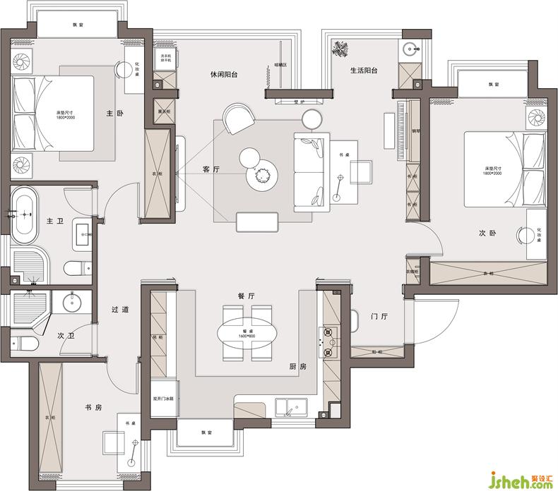 3.客廳與書房融為一體,盡可能釋放公共空間的功能屬性