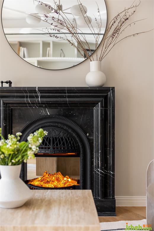 餐邊柜木色與仿大理石臺(tái)面搭配,簡(jiǎn)約大方。